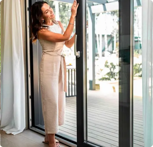 Параллельно-раздвижные системы от Рехау — уникальное решение, обеспечивающее не только легкость открывания, но и превосходную водонепроницаемость. Intelio Slide задействуют как в роли панорамных окон, так и в качестве двери. Благодаря удобной функции открывания вы сможете грамотно использовать пространство, так как в открытом положении дверь не занимает место в помещении.